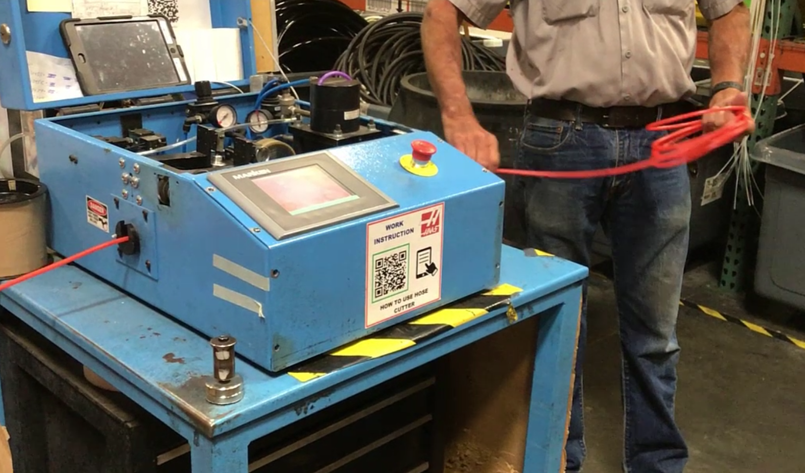 The organization was looking for ways to save hours across production. Hose kitting was a clear candidate since every machine requires hoses, making it 100% product-impacting. At the time, it took three people about 23 minutes per machine to cut and kit hoses. With ~12,500 machines produced annually, that added up to nearly 4,200 labor hours per year. We identified a vendor, Marken, who could develop a customized Auto Hose Feeder for Haas, with the potential to reduce kitting to 3 minutes per machine. I was tasked with driving the project from savings analysis through execution.